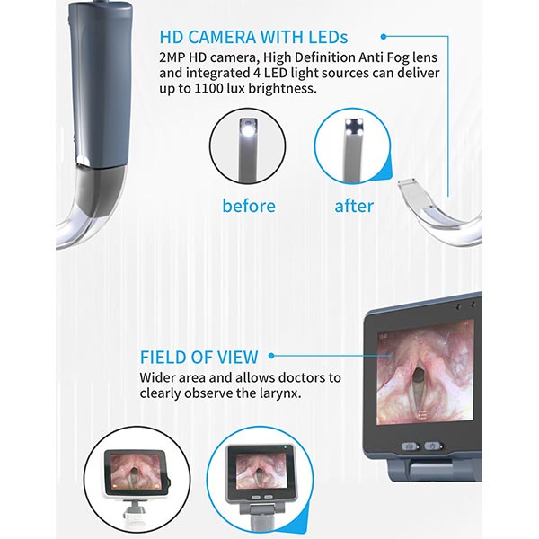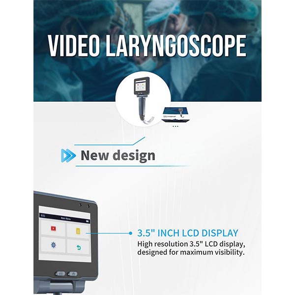 1,3,5-tums LCD-skärm: Videolaryngoskopet har en högupplöst 3,5-tums LCD-skärm, så att bilderna alltid är tydliga och stadigt. Oavsett vilken klinisk miljö eller arbetsmiljö du befinner dig i, ger det dig stor synlighet, så att du kan observera exakt och använd den på ett tillförlitligt sätt varje gång.